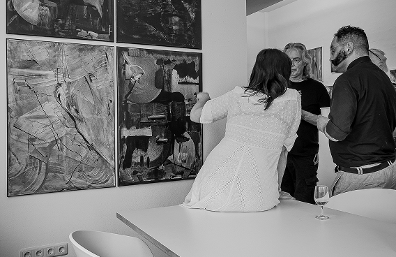 Ich komme aus der Musik – und in meiner Malerei schwingen diese Klangwelten weiter. Zwischen den Serien Black Waves und Chromatic spannt sich das Spektrum meiner Arbeit. Black Waves ist monochrom, bewegt sich in Nuancen von Schwarz, Grau und Sepia – reduziert auf Form, Bewegung und Tiefe. Chromatic öffnet sich der Farbe – vielschichtig, lebendig, impulsiv. Beide Serien entstehen aus Intuition und Rhythmus – unterschiedliche Frequenzen derselben Sprache.
