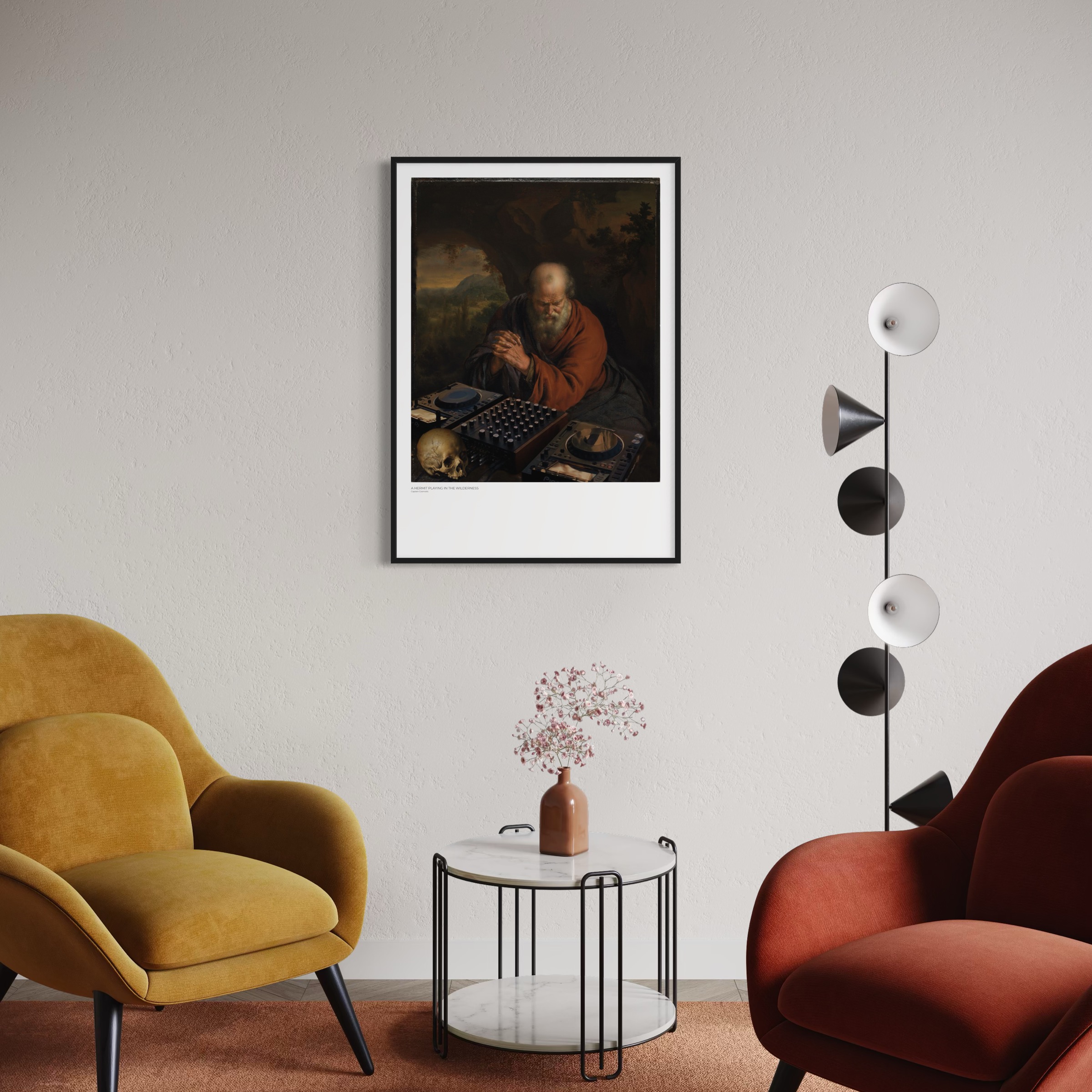 „A Hermit Playing in The Wilderness“ ist Captain Cosmotics Edit eines Gemäldes von Frans van Mieris aus dem Jahr 1665. Dargestellt ist ein Einsiedler, der über ein DJ-Setup gebeugt in sich versunken agiert.