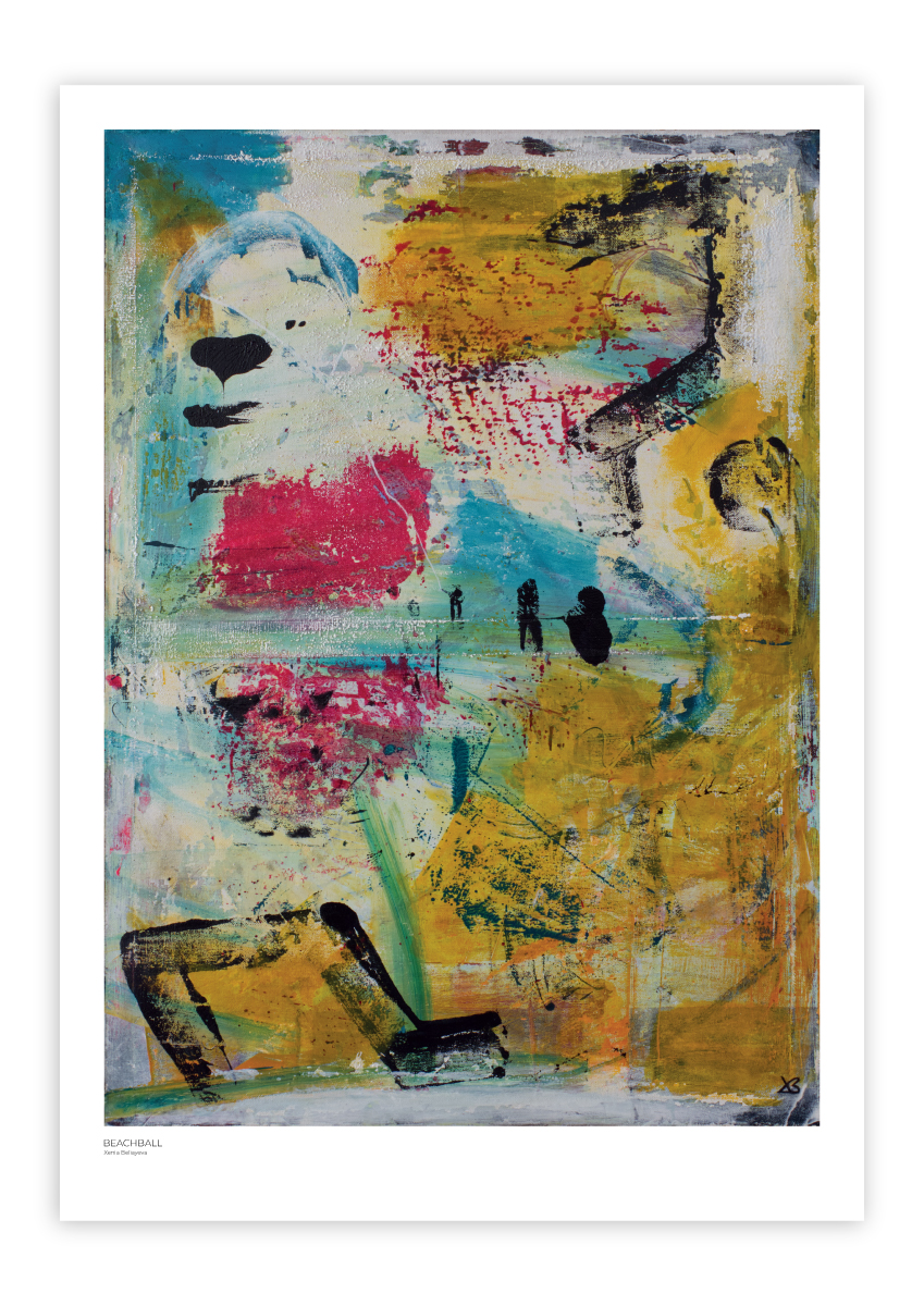 Beachball – zeitgenössische, abstrakte Malerei voller Leichtigkeit und Farbe. Ein Tag am Meer, lebendig und schön.