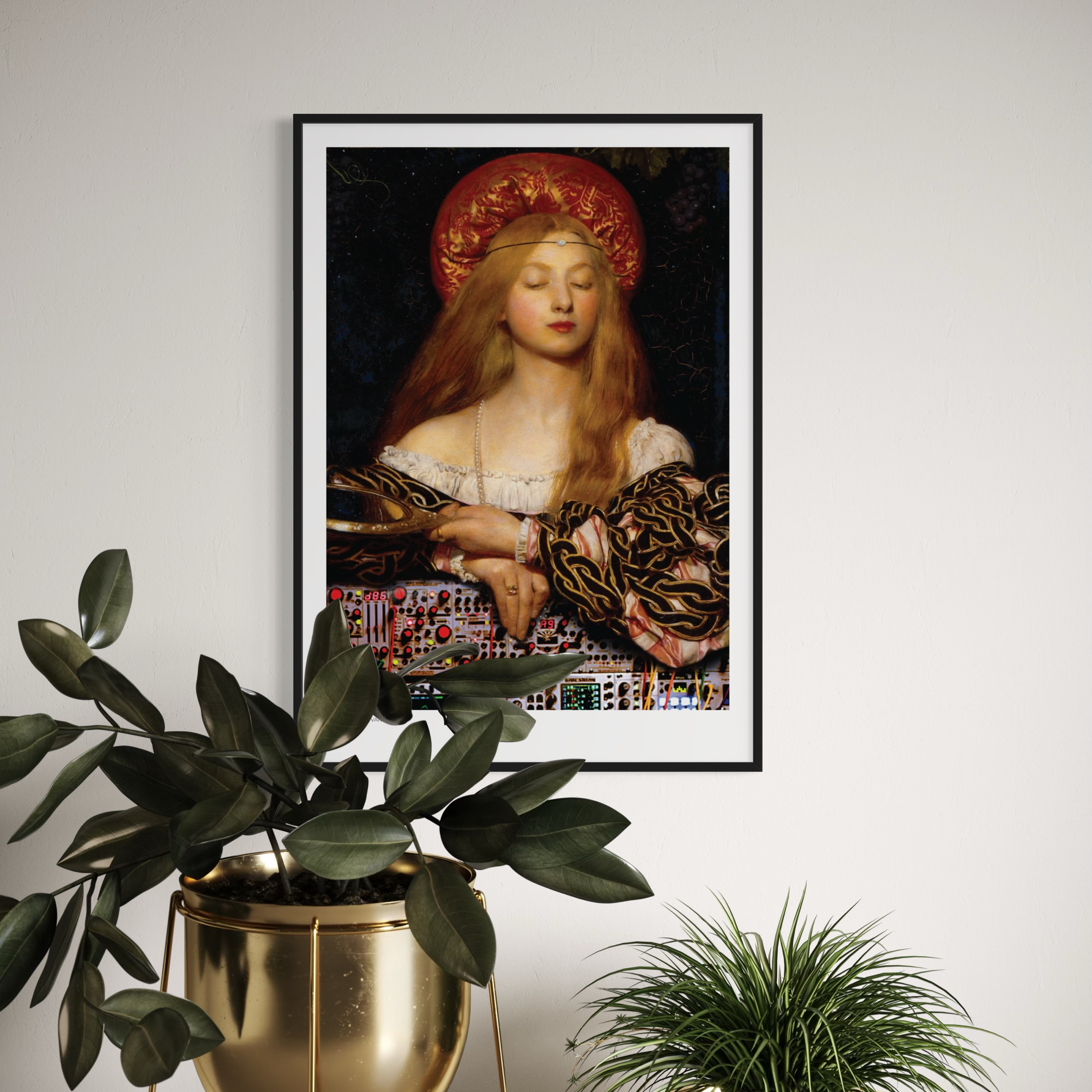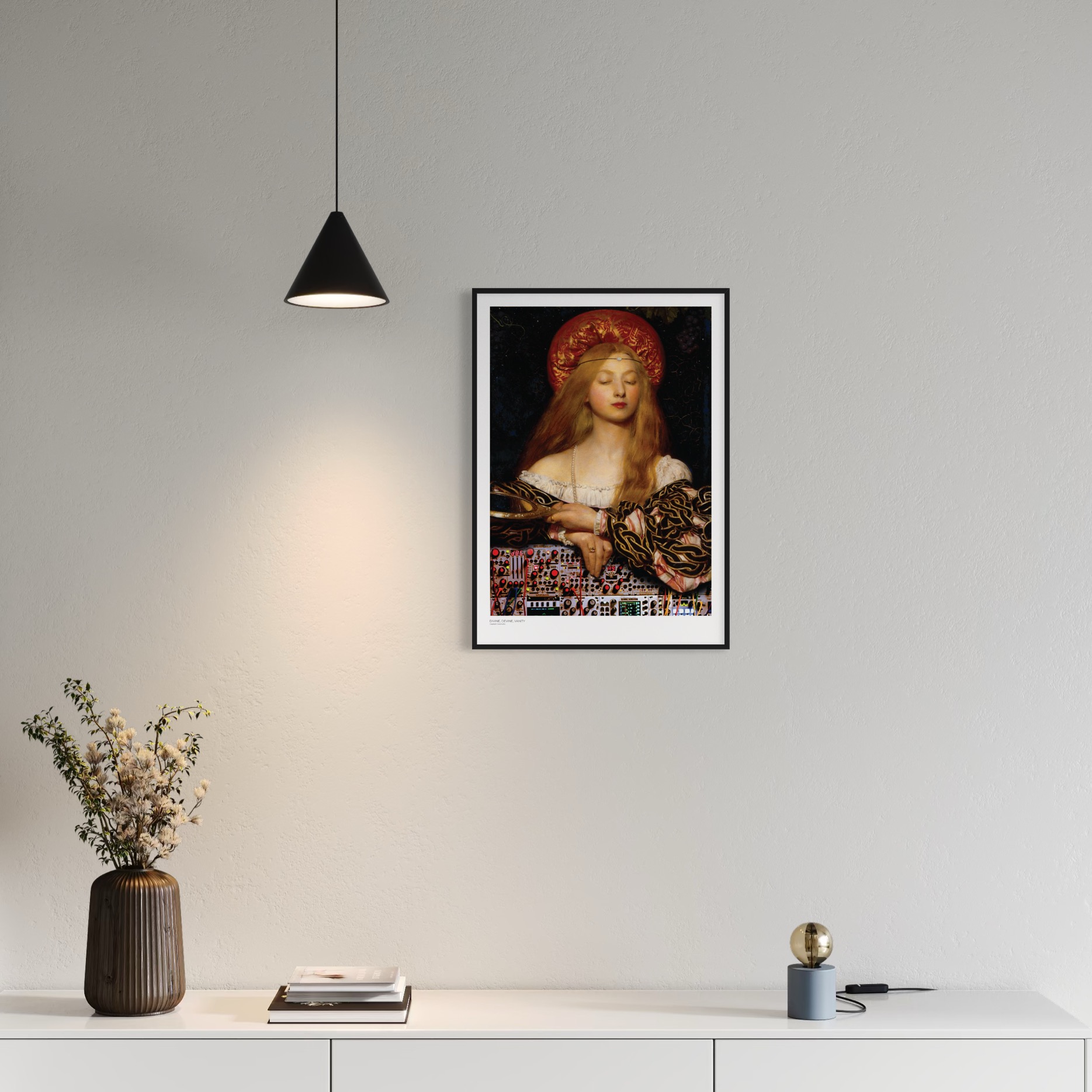 Die detaillierte Darstellung luxuriöser Stoffe und moderner Musikproduktionsgeräte verweist auf das erneute Interesse an angewandter Kunst, das in der britischen Kunst des späten 19. Jahrhunderts entstand.