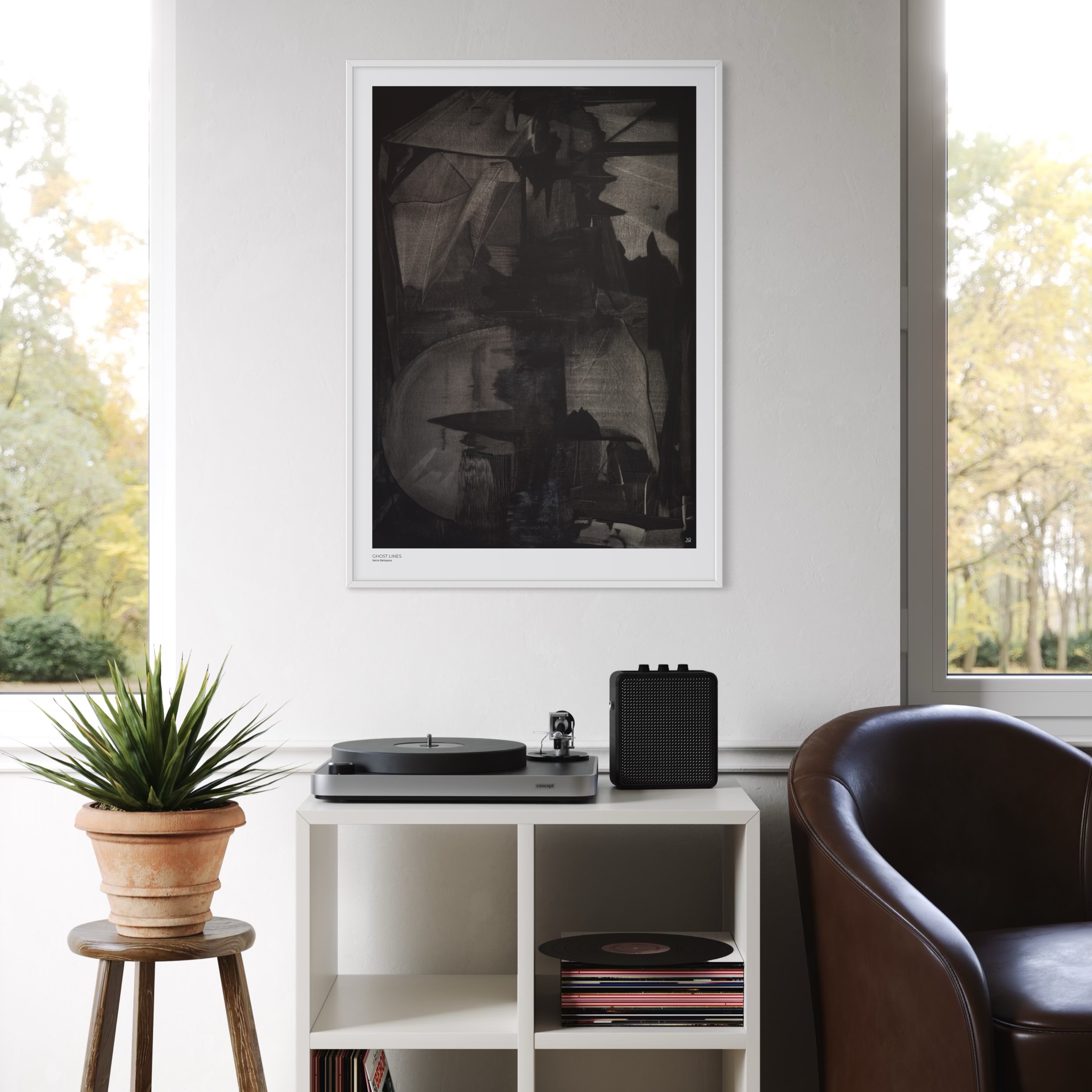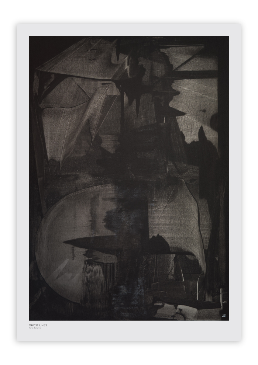 „Ghost Lines“ spielt mit einer imaginären, entrückten Stadt, abstrakte Malerei in Schwarz und Weiß.