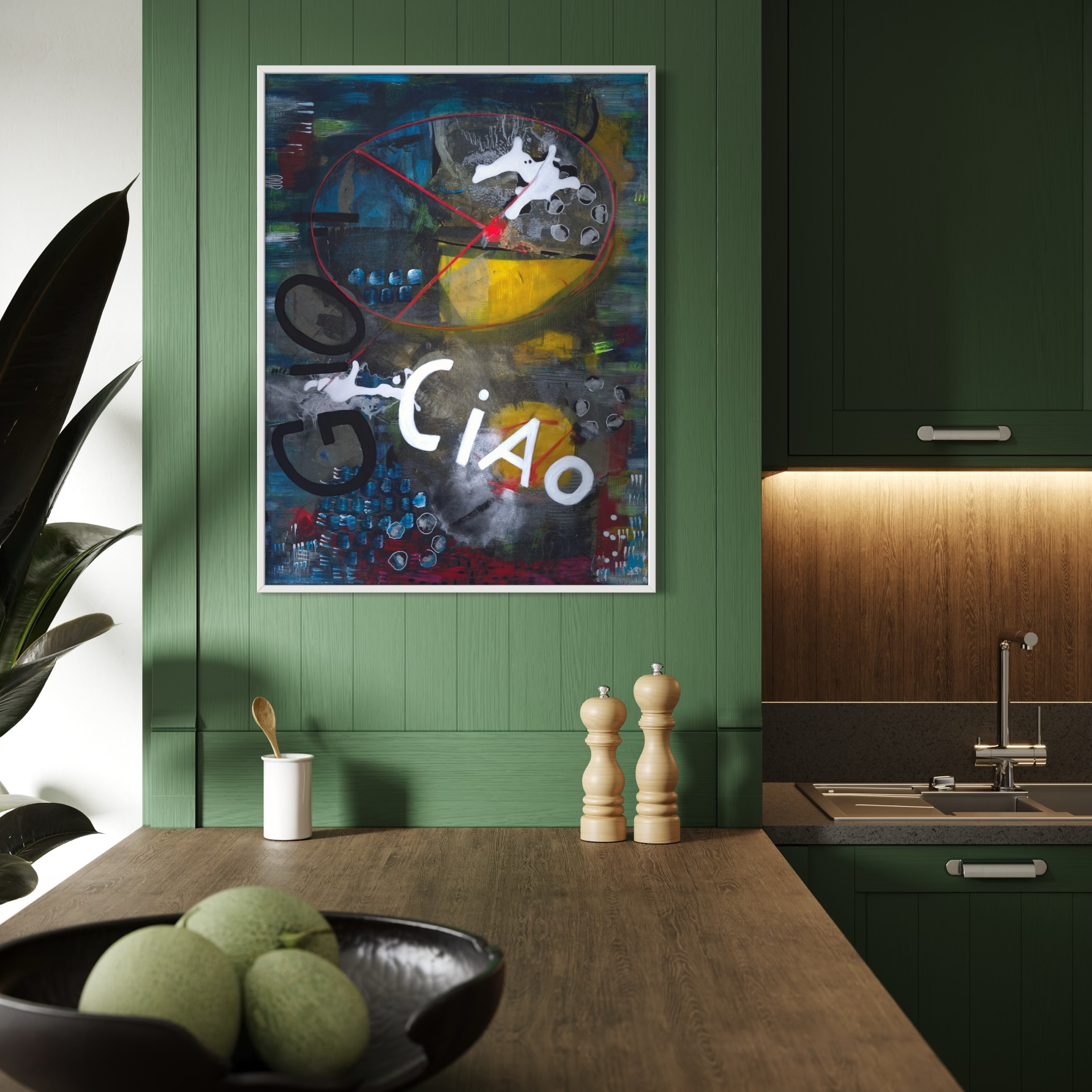 „Gio Ciao!“ – farbenfrohe, abstrakte Malerei mit italienischer Leichtigkeit und rebellischem Charme.