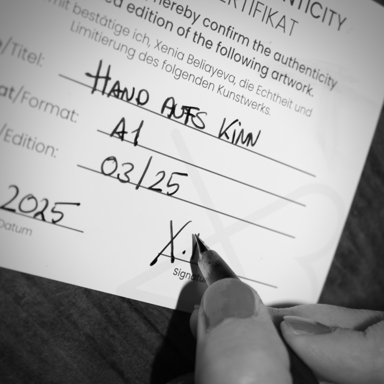 Ein Gesicht ruht auf einer Hand – still, versunken. Abstrakte Arbeit zwischen Vergänglichkeit und Neuanfang. Limitiert auf 25 Exemplare, gedruckt auf 310 g Hahnemühle FineArt Photo Rag.