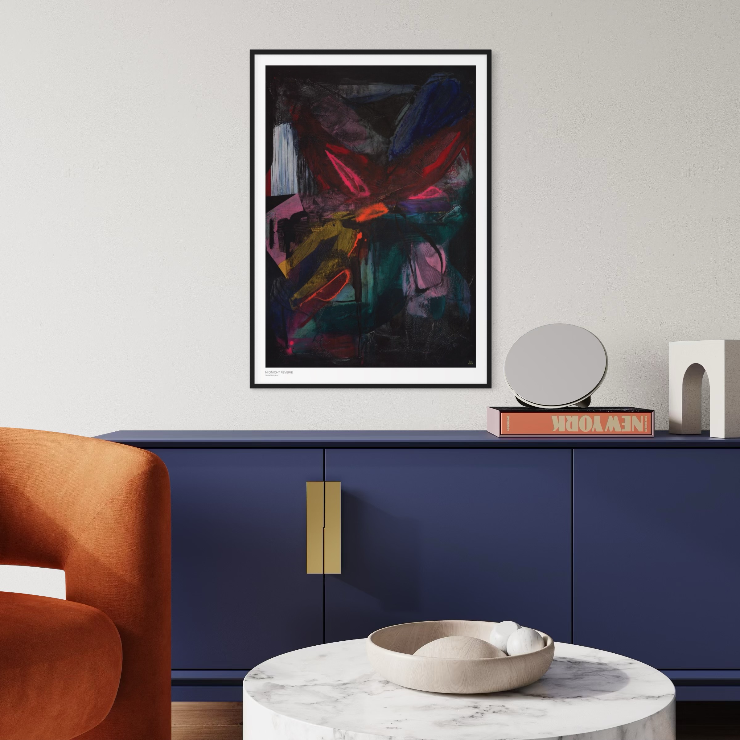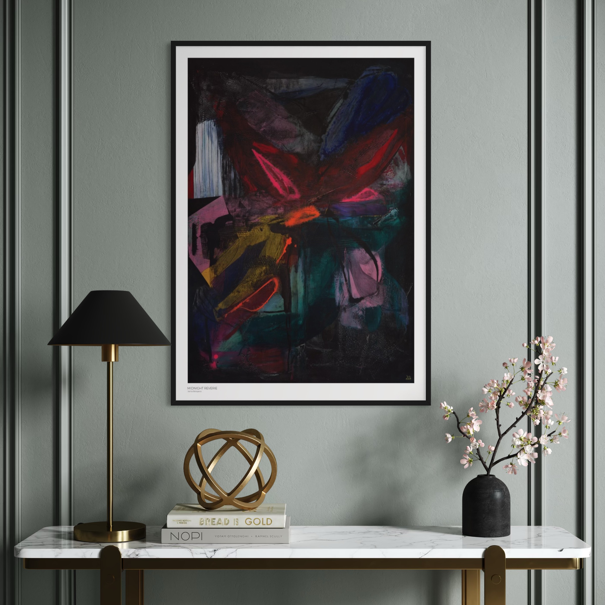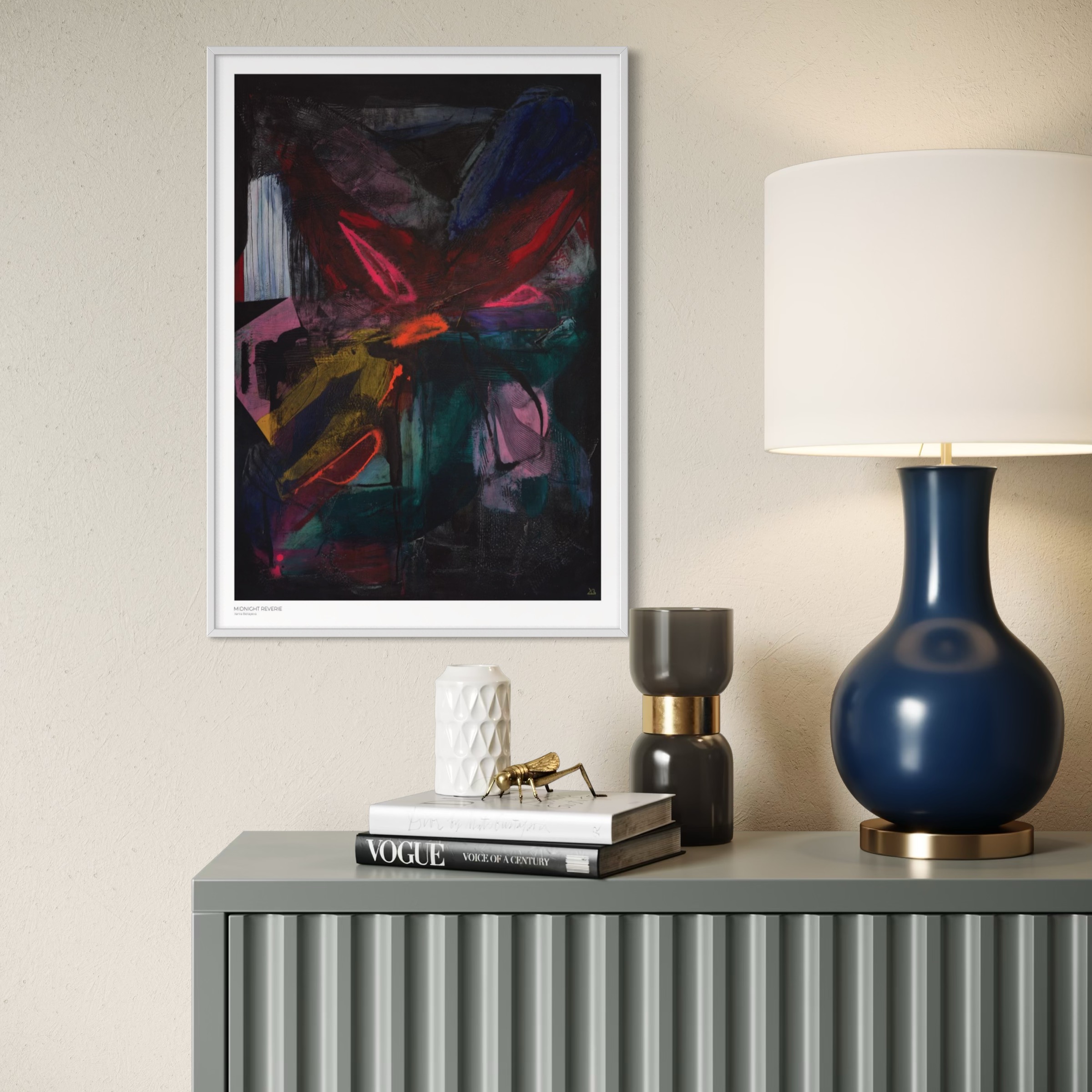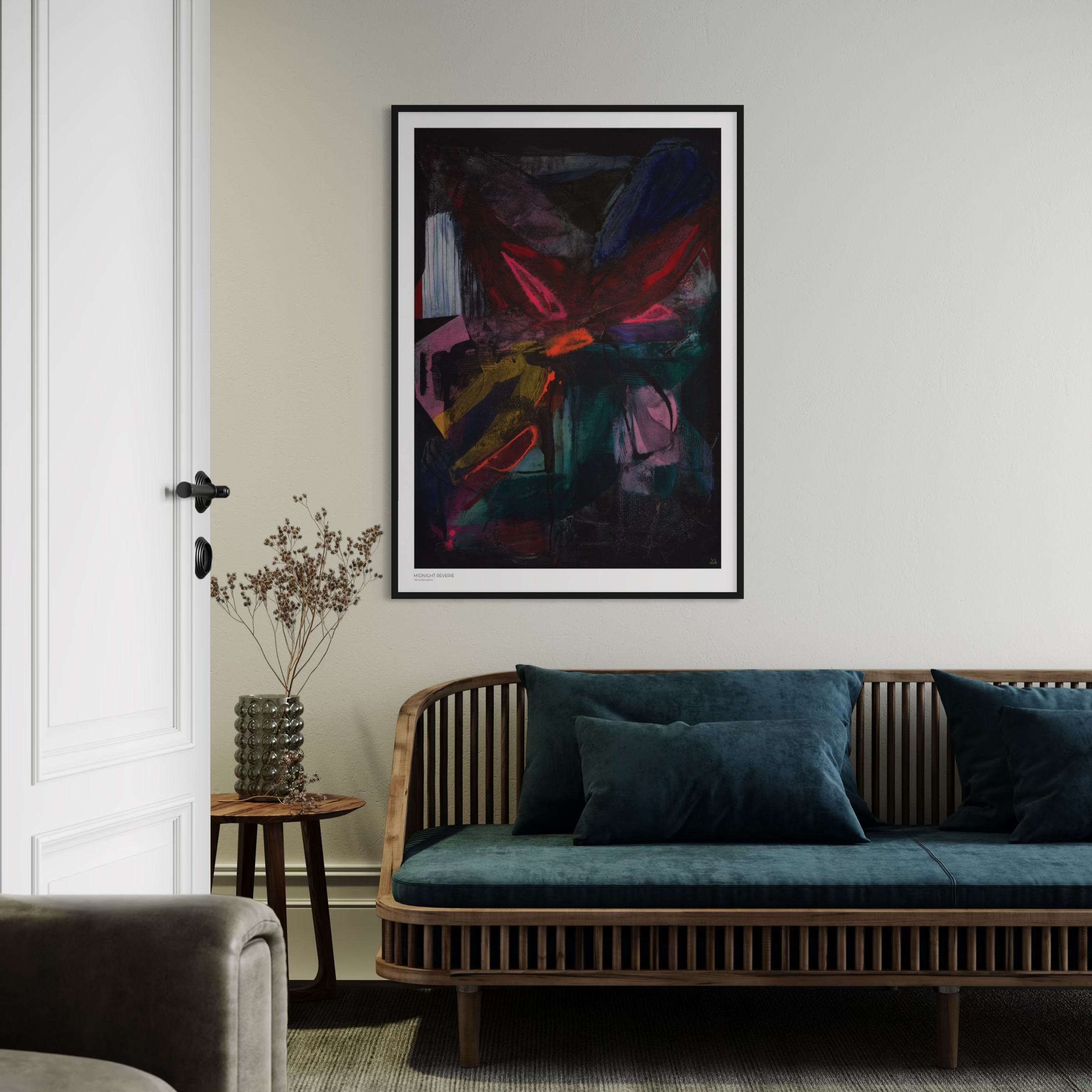 Midnight Reverie – abstrakte Kunst aus der Serie Twilight Mirage. Intensiv, tief und ein Leuchten aus dem Dunkeln.
