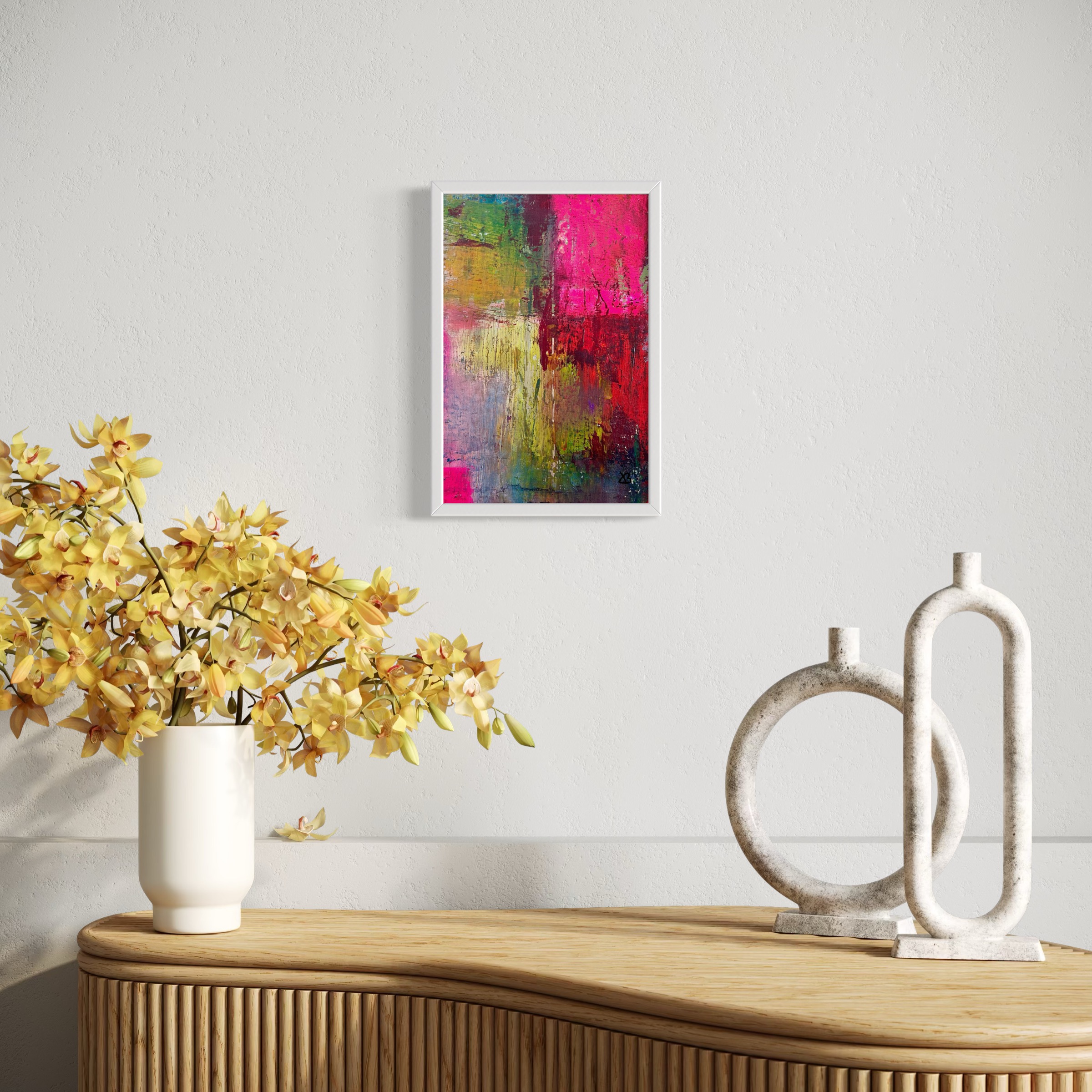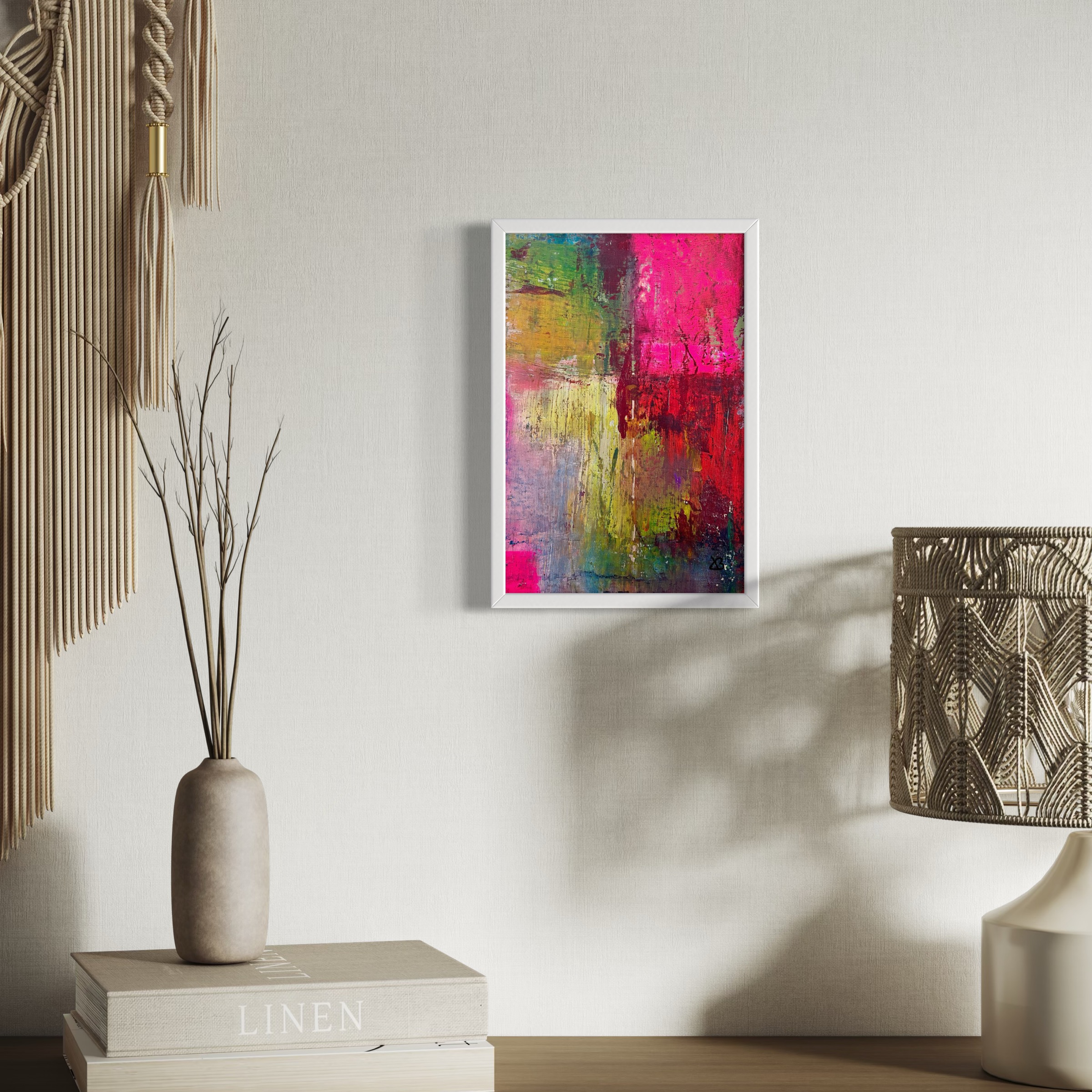Die Leinwand ist im weißen Pinienholzrahmen gefasst und sofort bereit zum Aufhängen.